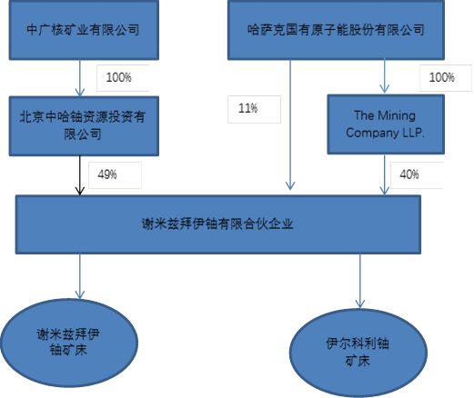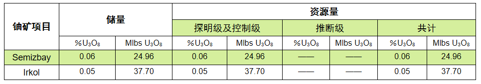 2015年中廣核礦業完成哈薩克斯坦謝米茲拜伊鈾有限合伙企業49%股權的收購,并獲得旗下兩座在運營鈾礦山(謝米茲拜伊鈾礦床和伊爾科利鈾礦床)49%的天然鈾產品包銷權,成為一家主業清晰的鈾資源開發和貿易公司。 謝米茲拜伊有限合伙企業的架構 謝米茲拜伊鈾礦床 謝米茲拜伊鈾礦井場 謝米茲拜伊鈾礦現場鉆探 謝米茲拜伊鈾礦產品液加工車間   伊爾科利鈾礦床 伊爾科利鈾礦辦公樓 伊爾科利鈾礦產品液加工車間 伊爾科利井場 資源量及儲量(2021.12.31)